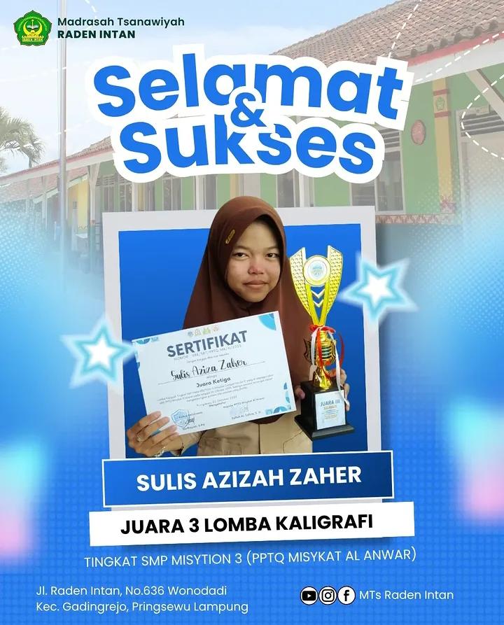 Kepala MTs Raden Intan Gadingrejoselamat dan apresiasi yang setinggi-tingginya kami sampaikan kepada peserta didik yang telah meraih ...